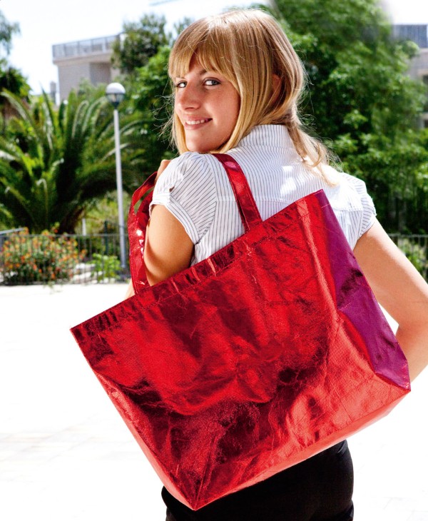 Geantă de plajă nețesută, cu finisaj satinat, lucioasă.