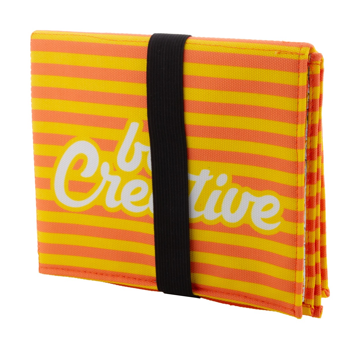 Pernă de stadion, personalizată, pliabilă, din poliester 600D RPET, cu fund izolator din aluminiu. Cu grafică imprimată prin sublimare pe partea din față. MOQ: 50 buc.