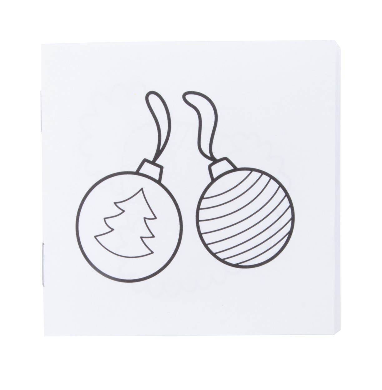 Set de colorat, de Crăciun, realizat la comandă, în cutie de hârtie imprimată color, cu brad de Crăciun tăiat. Inclusiv creioane colorate din lemn (12 buc) și carte de colorat de Crăciun. MOQ: 100 buc.