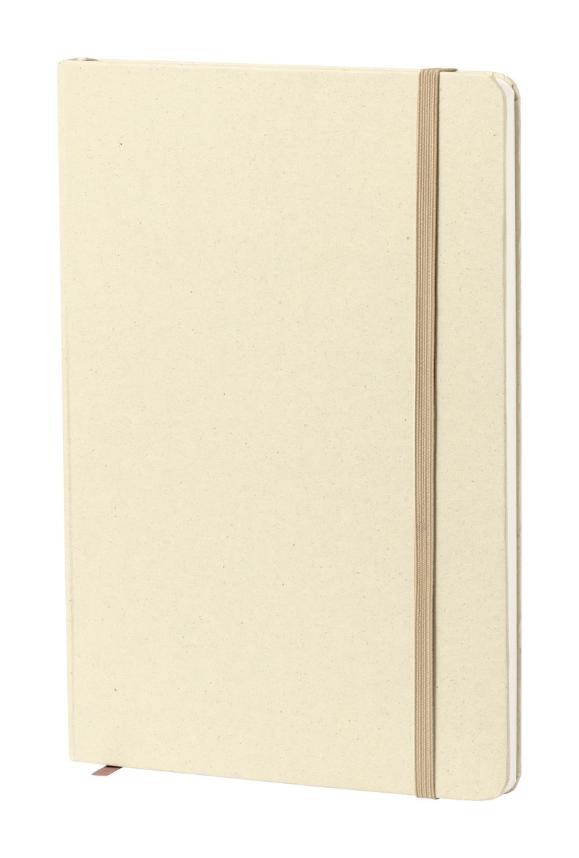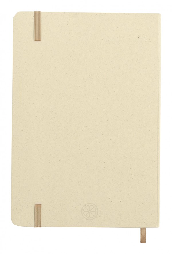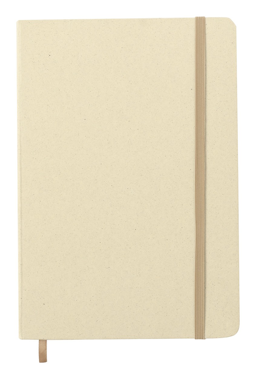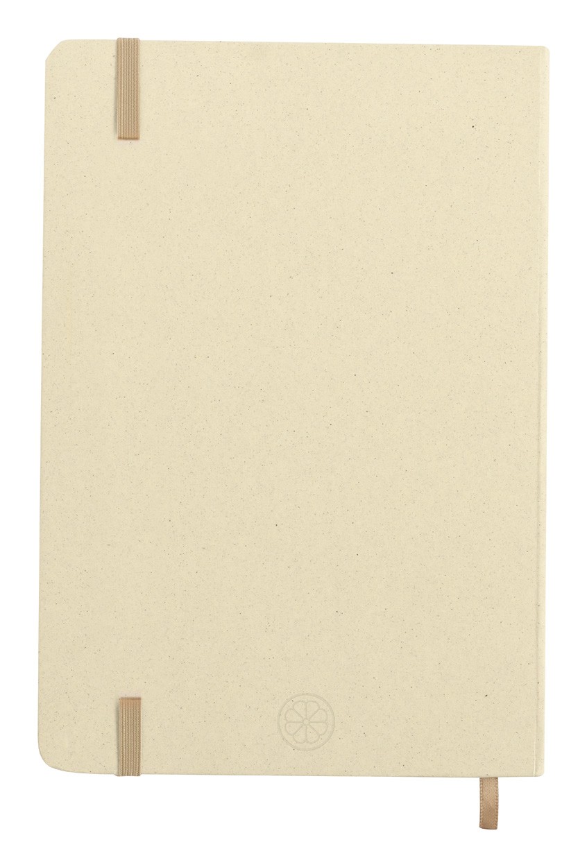Agendă cu copertă din hârtie de fructe, cu 80 de foi dictando din hârtie reciclată. Cu marcaj și curea de cauciuc. Dimensiune A5.