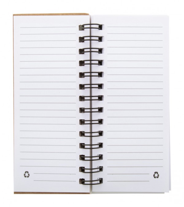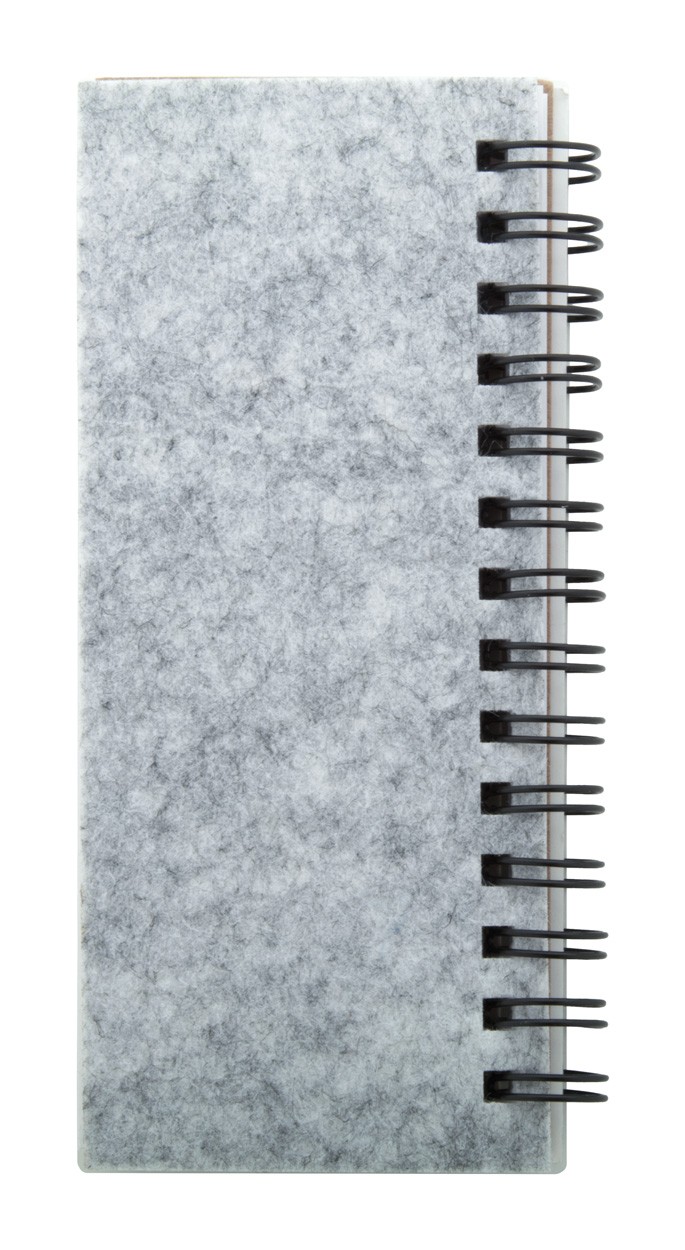 Caiet spiralat, cu copertă din pâslă RPET, cu 40 de foi dictando, din hârtie reciclată, 25 de note adezive și 125 de markere de pagină (în 5 culori diferite).