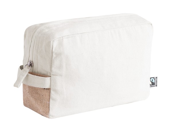 Geantă pentru cosmetice, cu fermoar din bumbac Fairtrade și iută laminată, cu etichetă distinctă Fairtrade. 100% bumbac Fairtrade, 180 g/m².