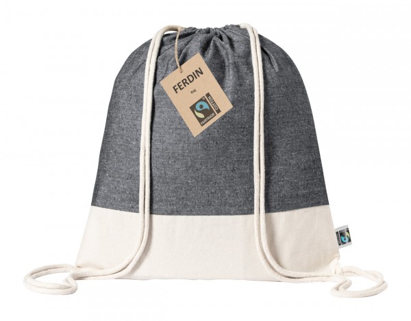 Rucsac cu șnur, din bumbac Fairtrade, în două tonuri. 100% bumbac Fairtrade, 140 g/m². Cu etichetă distinctă Fairtrade.