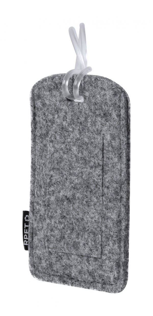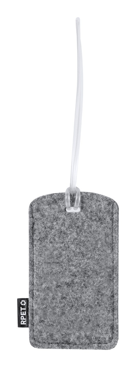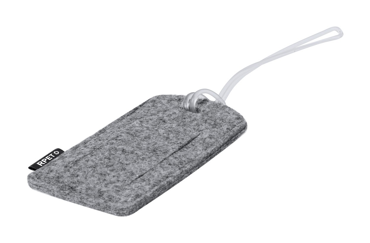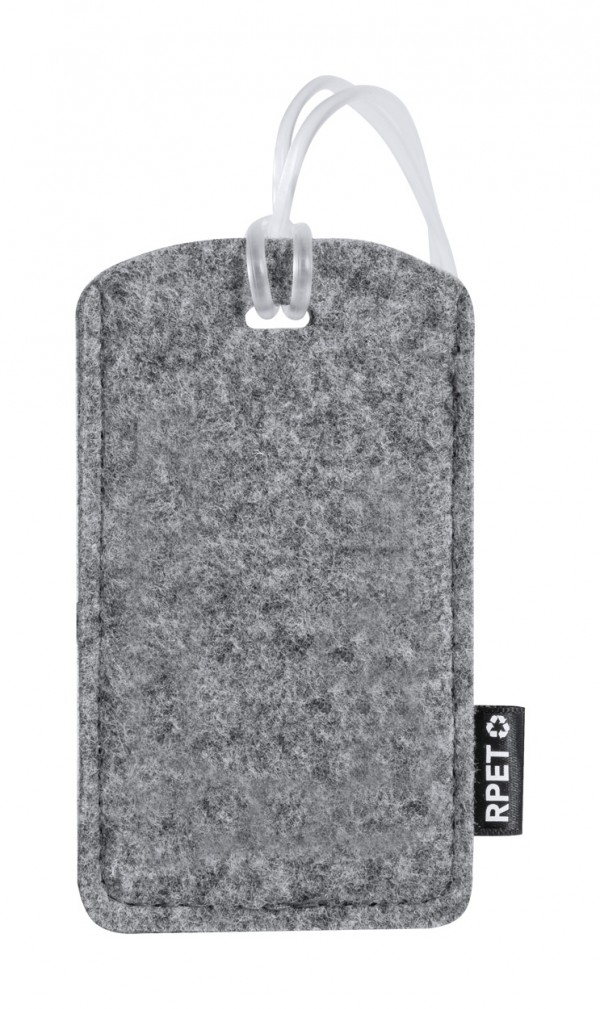 Etichetă de bagaj din fetru RPET, cu curea elastică.