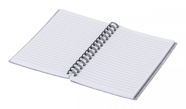 Caiet cu spirală, acoperit cu pâslă RPET, cu 100 de foi dictando, dimensiune A5.
