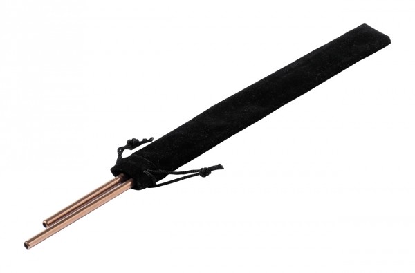 Set paie reutilizabile, 2 buc, din oțel inoxidabil placat cu cupru, cu perie de curățare. În husă de catifea.