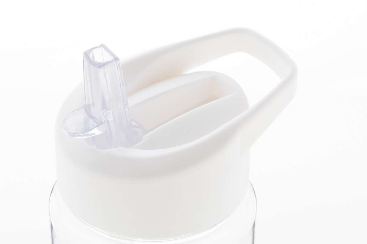 Sticlă sport RPET, cu capac de băut rabatabil din PP și pai integrat. 650 ml. Fără BPA. Nu este potrivit pentru băuturi carbogazoase.
