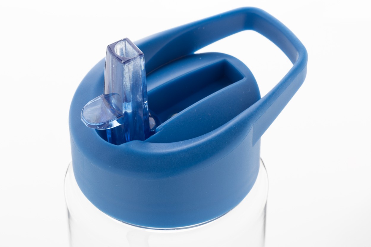 Sticlă sport RPET, cu capac de băut rabatabil din PP și pai integrat. 650 ml. Fără BPA. Nu este potrivit pentru băuturi carbogazoase.