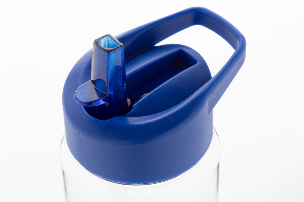 Sticlă sport RPET, cu capac de băut rabatabil din PP și pai integrat. 650 ml. Fără BPA. Nu este potrivit pentru băuturi carbogazoase.