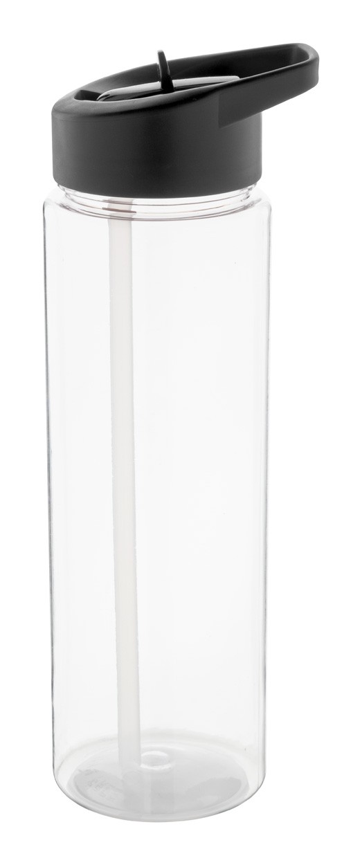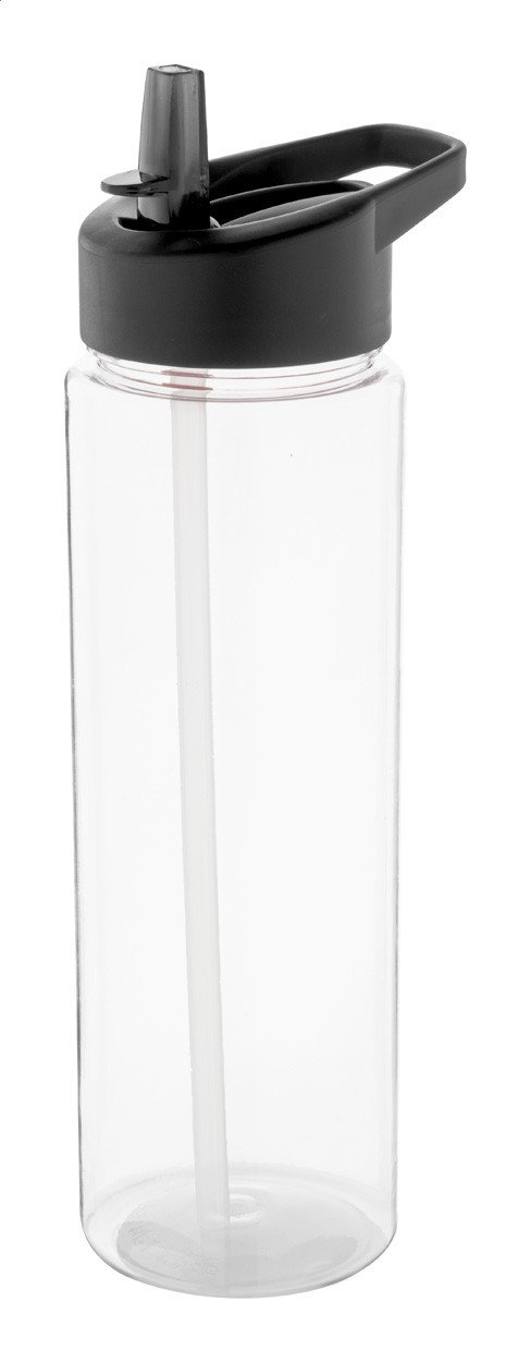 Sticlă sport RPET, cu capac de băut rabatabil din PP și pai integrat. 650 ml. Fără BPA. Nu este potrivit pentru băuturi carbogazoase.
