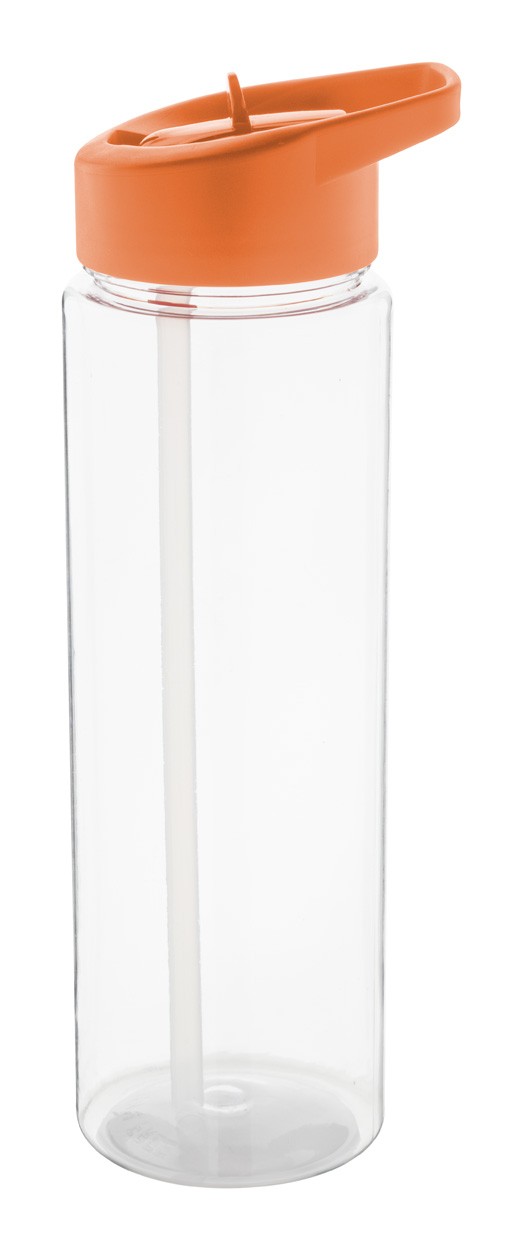Sticlă sport RPET, cu capac de băut rabatabil din PP și pai integrat. 650 ml. Fără BPA. Nu este potrivit pentru băuturi carbogazoase.