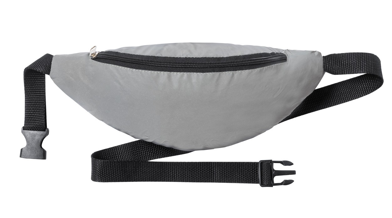 Geantă reflectorizantă în talie, cu compartiment cu fermoar și curea reglabilă. Poliester 210T.