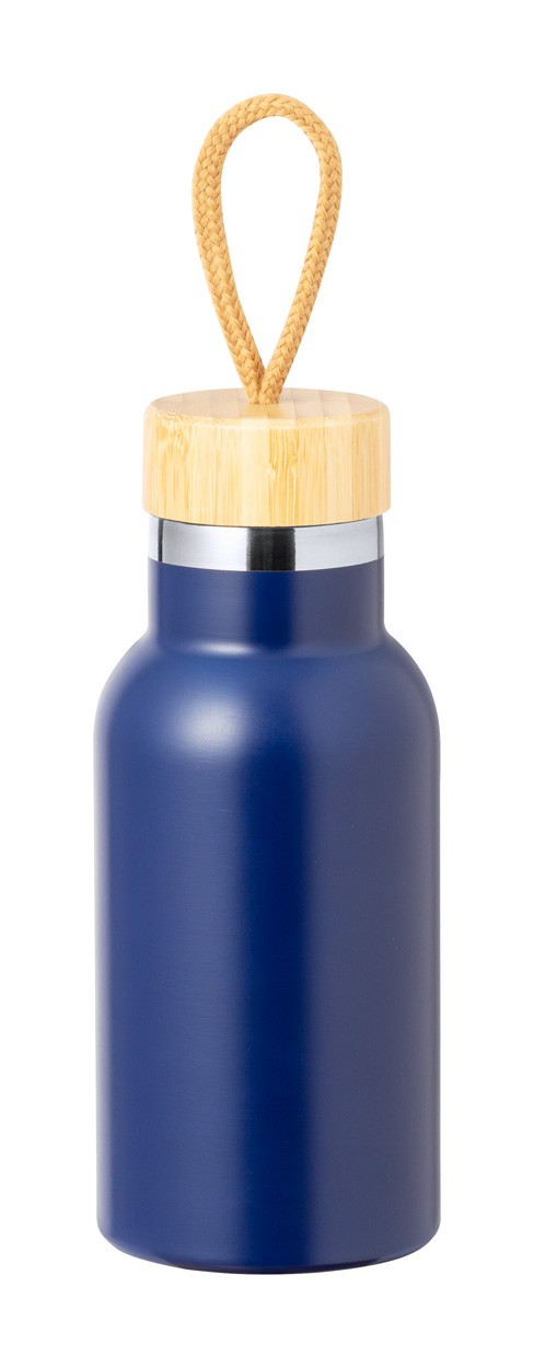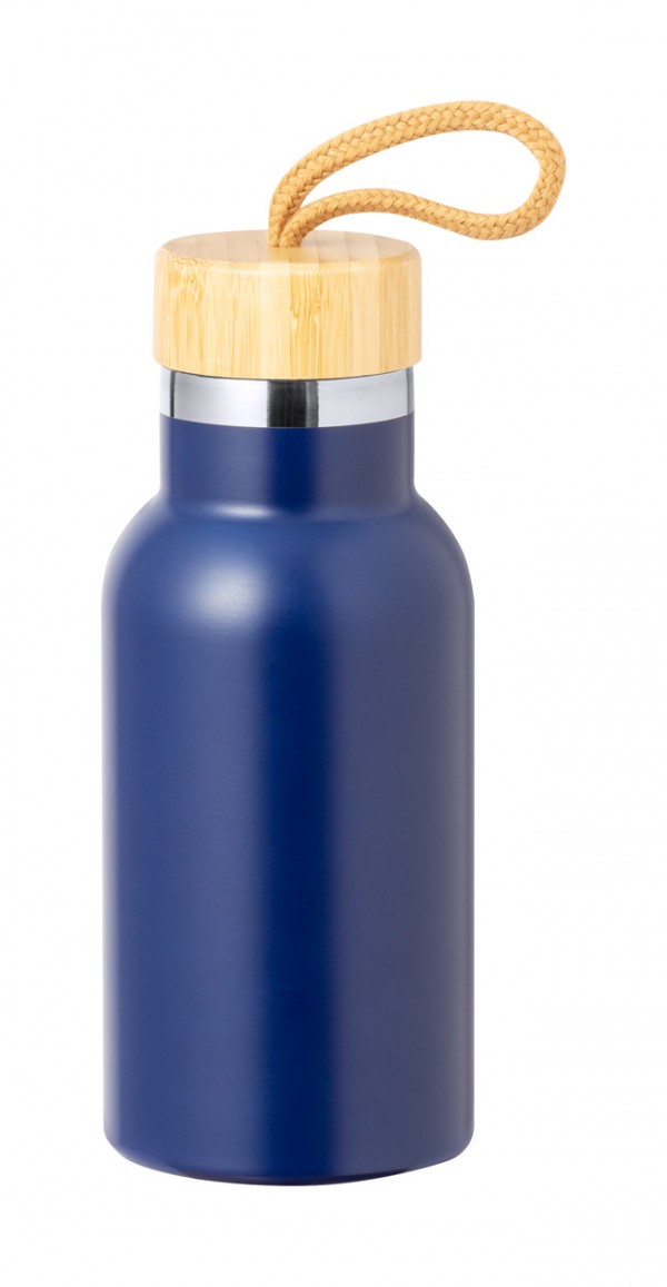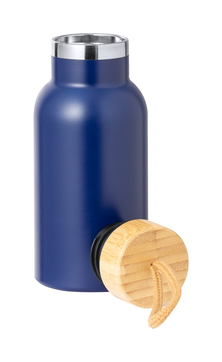 Termos cu perete dublu, din oțel inoxidabil, cu capac din bambus și curea de transport, 350 ml. Izolația menține băuturile calde timp de 3 ore și reci timp de 15 ore.