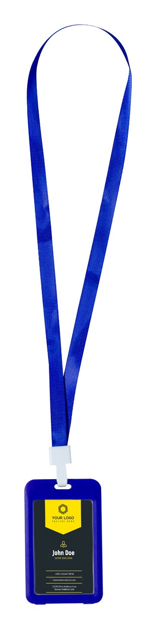 Polyester lanyard with card holder, PVC window and plastic carabiner.