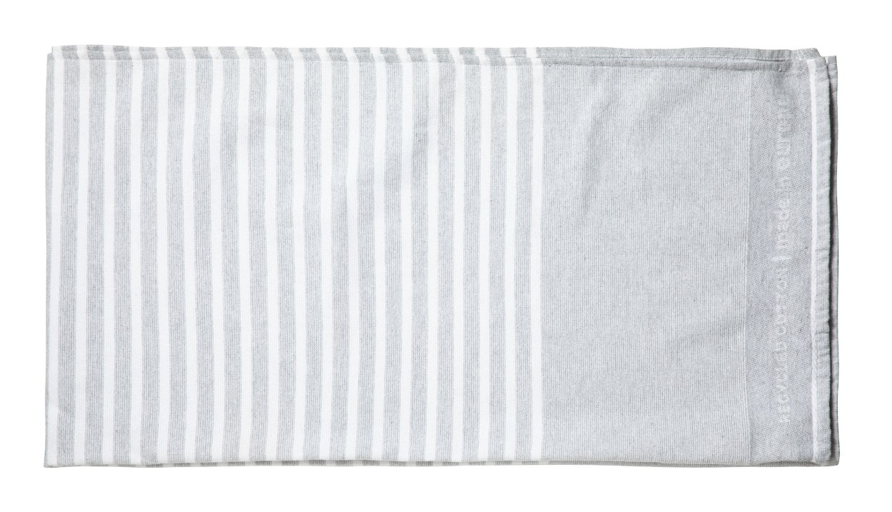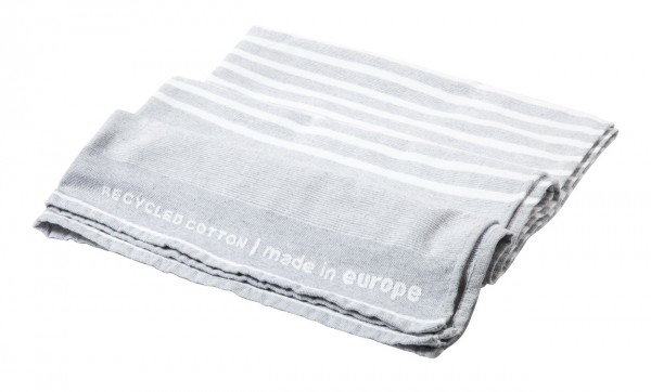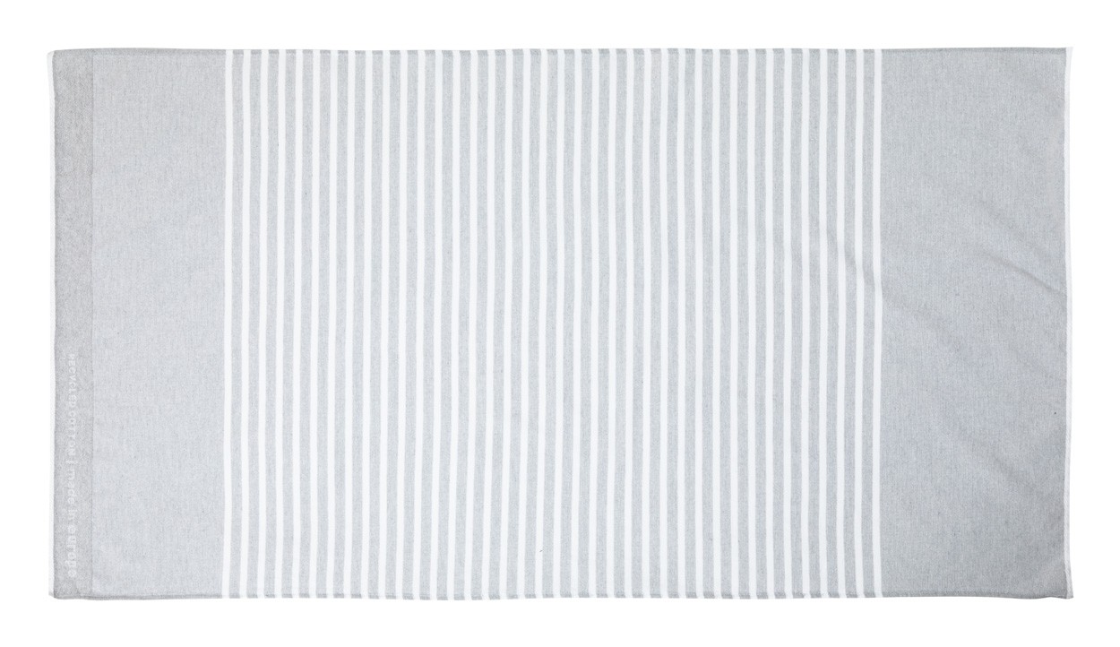 Prosop de plajă, bicolor. Amestec de 65% bumbac reciclat și 35% poliester, 330 g/m².