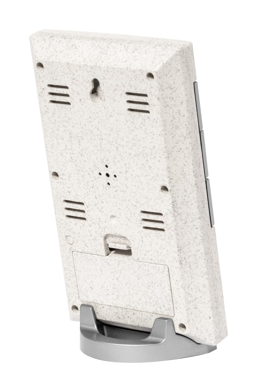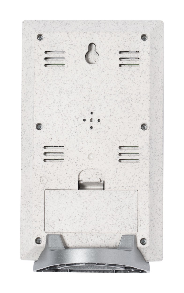 Ceas digital din plastic ecologic din paie de grâu și stație meteo cu termometru și afișaj de umiditate. Funcționează cu 2 baterii AAA, fără baterii.