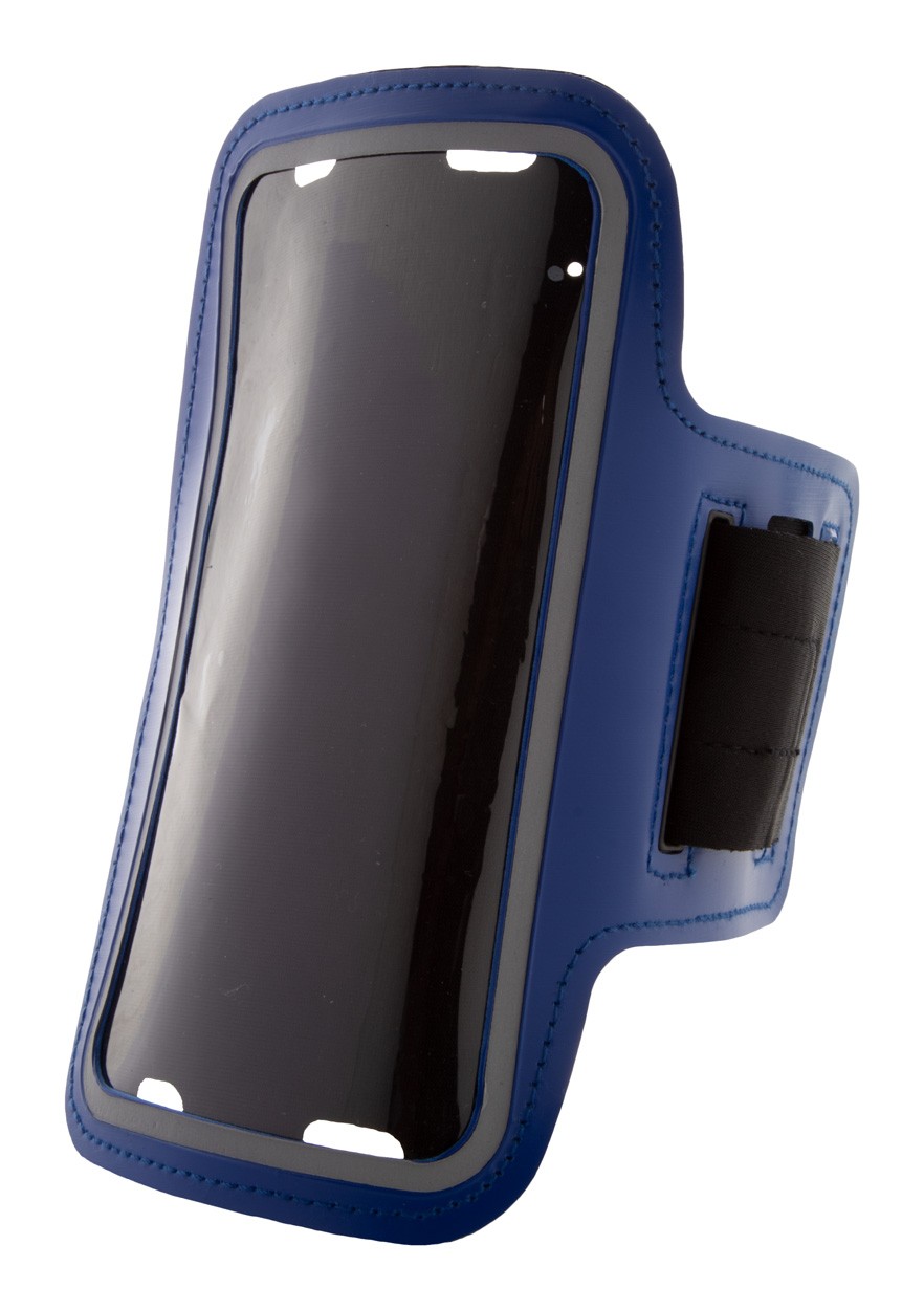 Suport telefon mobil tip brățară, din înlocuitor piele, cu fereastră pentru touchscreen, margine reflectorizantă. Pentru telefoane de până la 6 inch.