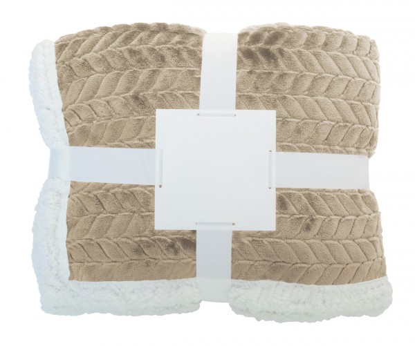Pătură RPET, cu două straturi, cu model jacquard. Cu 240 g/m² RPET flanel fleece și căptușeală reversibilă 210 g/m² RPET sherpa fleece. Prins în panglică și carton card din hârtie imprimabilă.