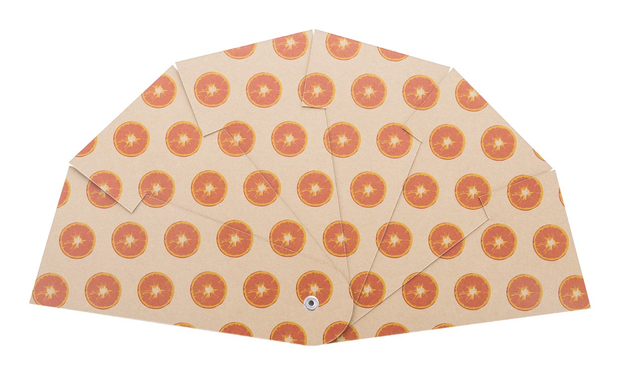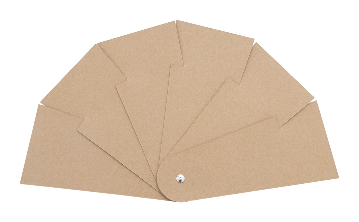 Evantai de mână, din hârtie kraft, realizat la comandă, cu grafică color. Prețul include imprimarea digitală pe ambele fețe. MOQ: 100 buc.