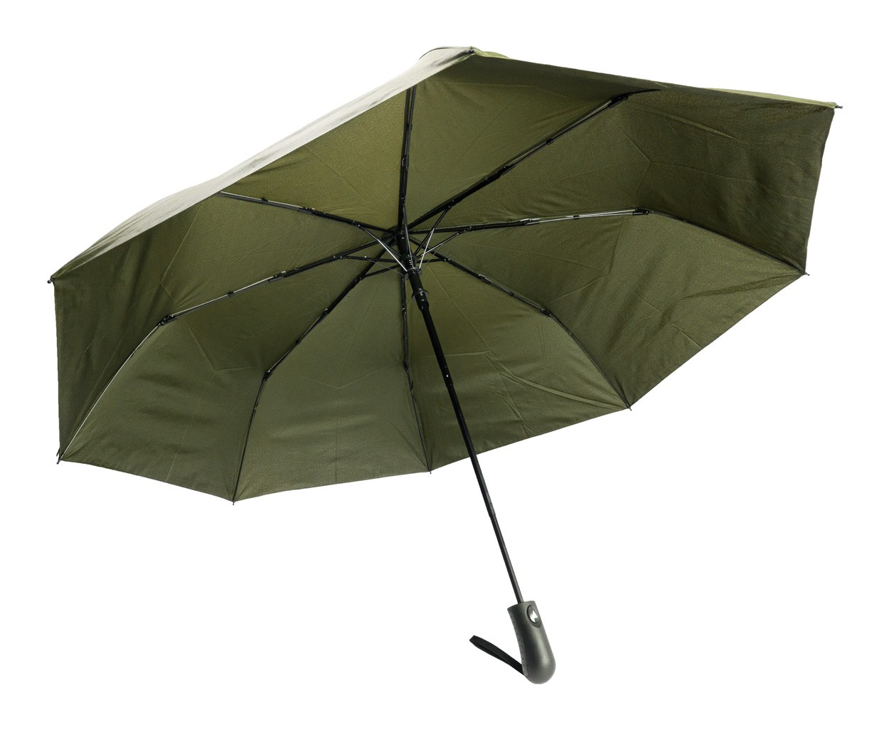 Umbrelă pliabilă automată, de dimensiuni mari, rezistentă la vânt, cu 8 panouri în husă de culoare asortată. Cu cadru metalic, nervuri din fibră de sticlă și mâner ABS cu curea de mână. Pongee 190T RPET. Cu etichetă distinctivă RPET.