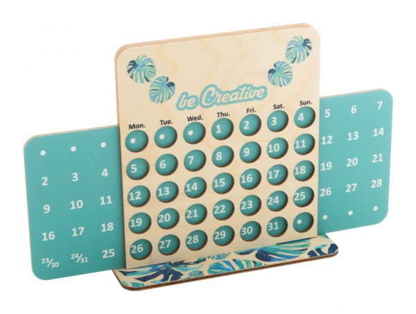 Calendar de birou perpetuu, realizat la comandă, din placaj de mesteacăn. Prețul include imprimarea color pe față și pe bază. Livrat ambalat plat. MOQ: 50 buc.