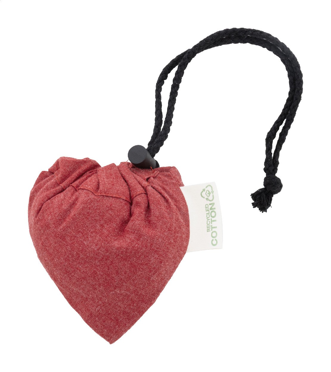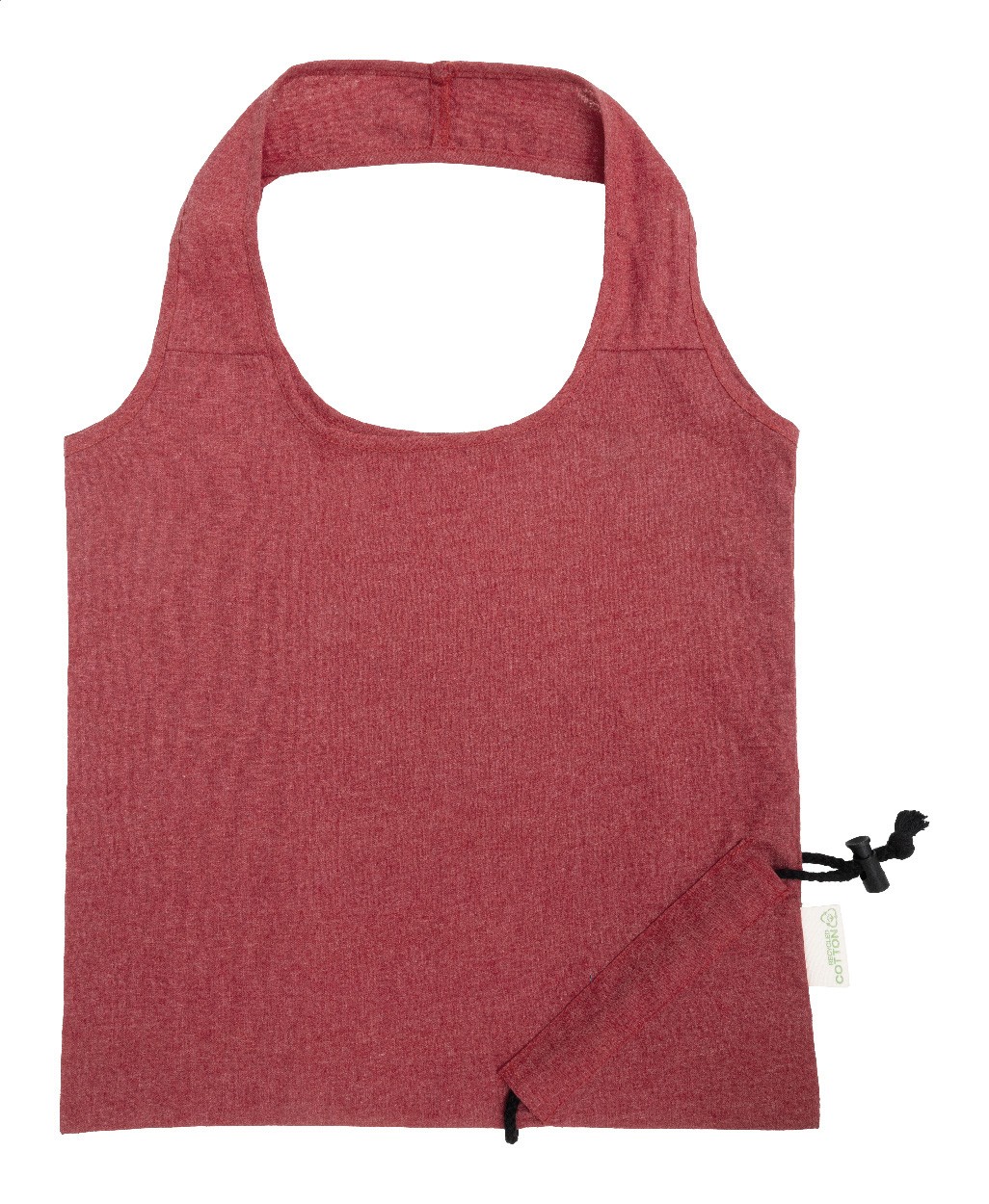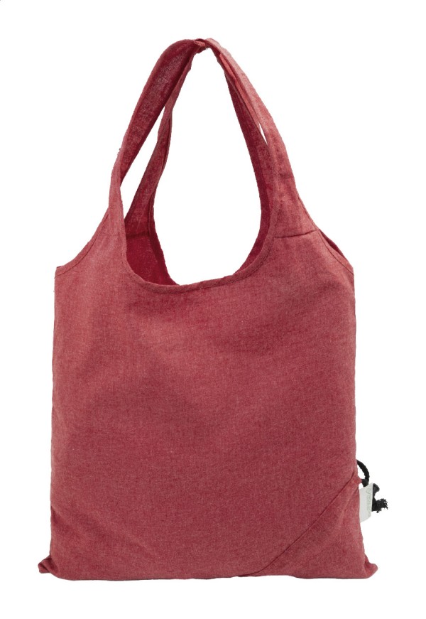Sacoșă de cumpărături pliabilă, din 70% bumbac reciclat și 30% poliester RPET, 140 g/m². Cu etichetă distinctivă din bumbac reciclat.
