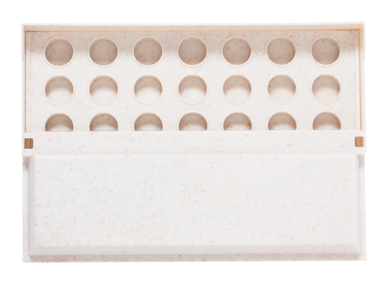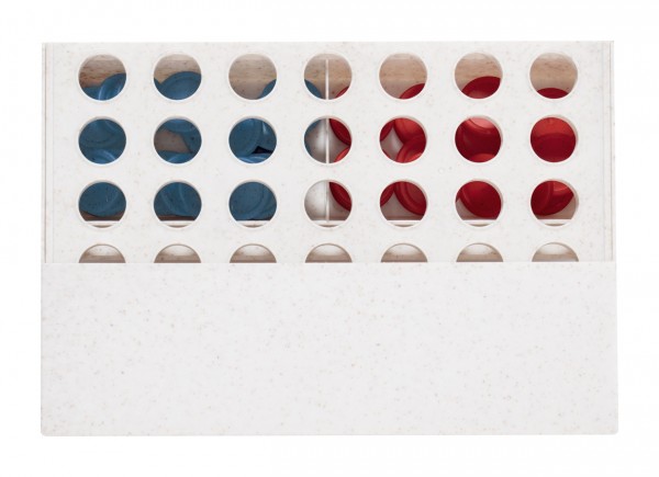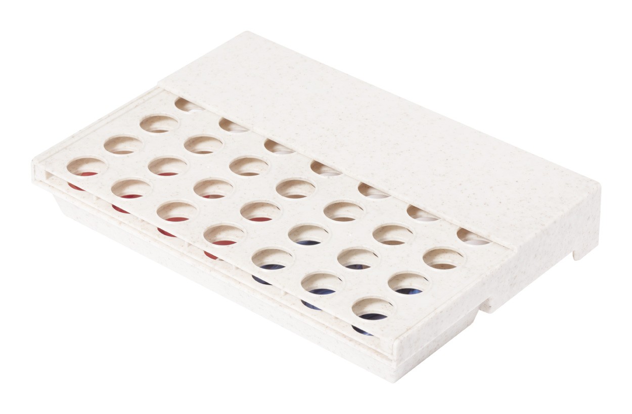 Joc de masă, ecologic, din plastic cu paie de grâu, cu tablă verticală pliabilă și 42 de jetoane. În timpul jocului, jucătorii aruncă pe rând jetoane pe tablă, urmărind să alinieze patru jetoane la rând.