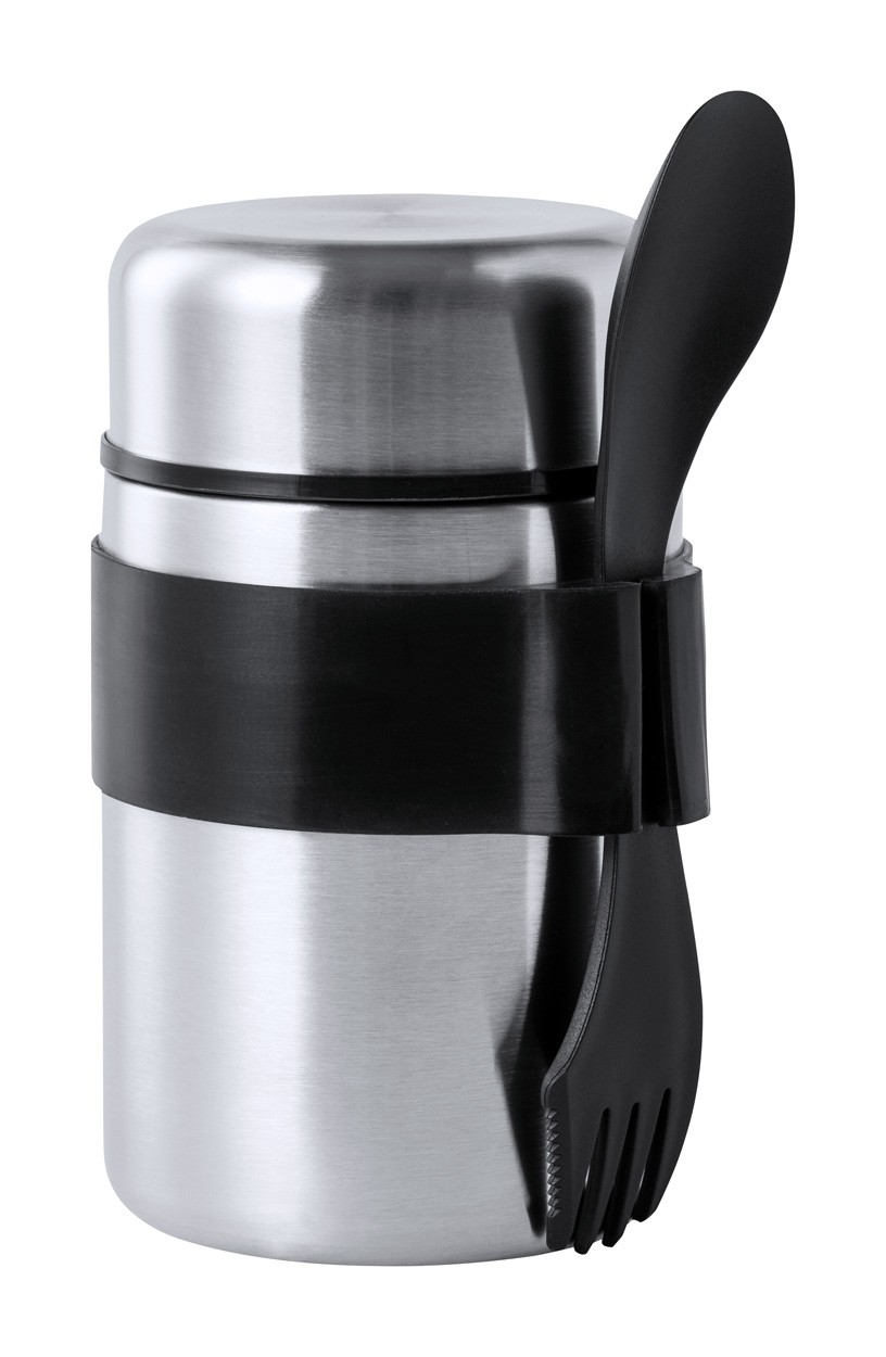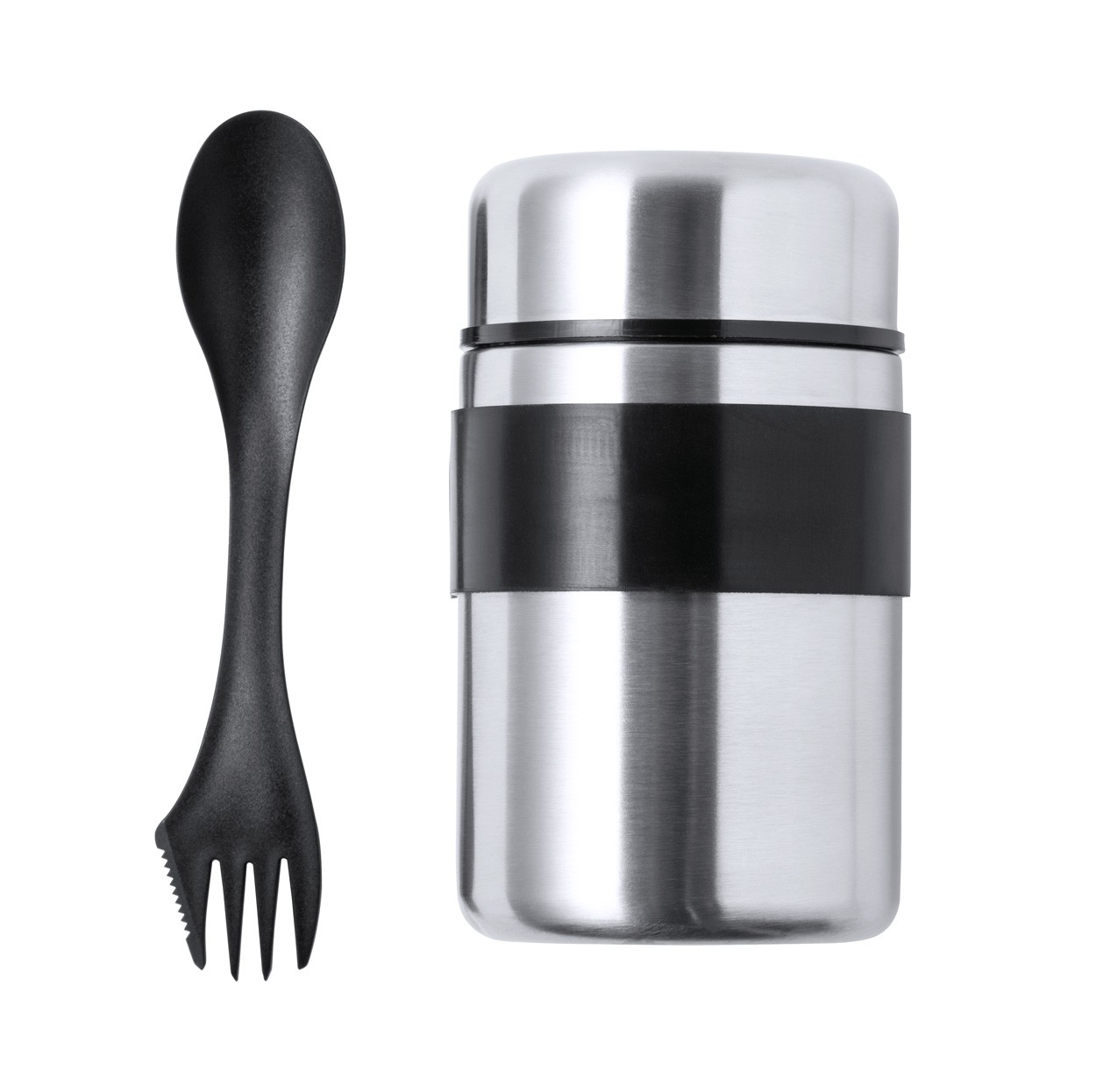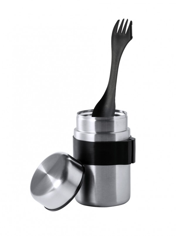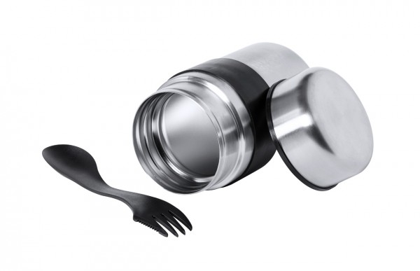 Cutie de prânz din oțel inoxidabil cu capac etanș și tacâmuri din plastic PP (furculiță și lingură), 500 ml.