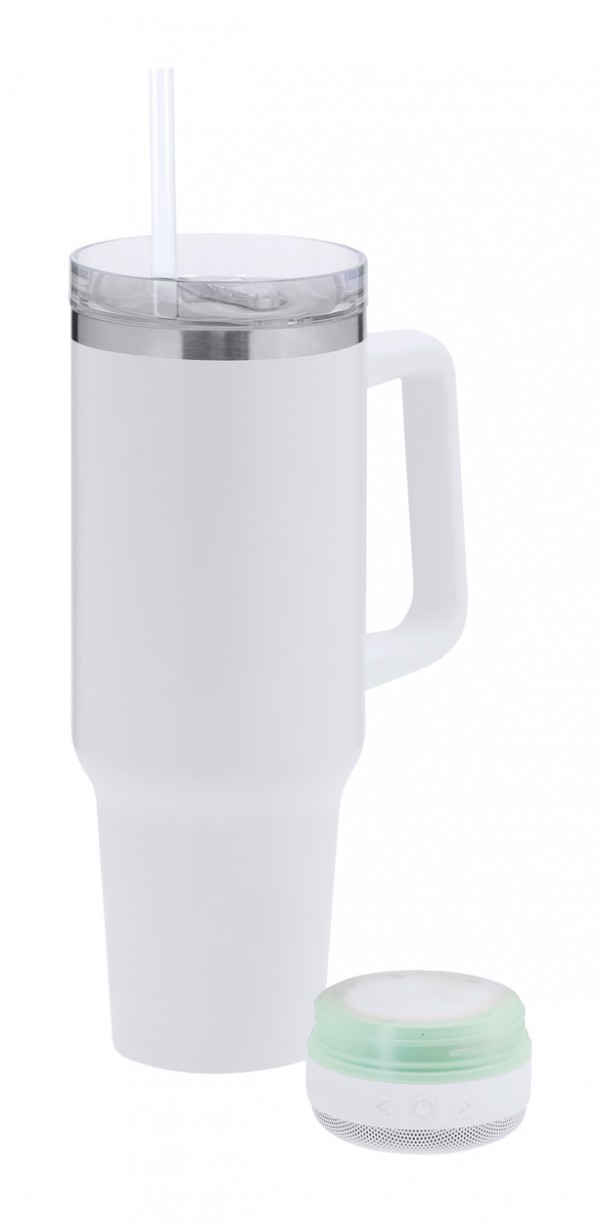 Cană termoizolantă cu pereți dubli, din oțel inoxidabil, cu capac pentru băut, pai și difuzor wireless cu lumini LED multicolore, funcție de apelare mâini libere și baterie reîncărcabilă încorporată. 1250 ml.