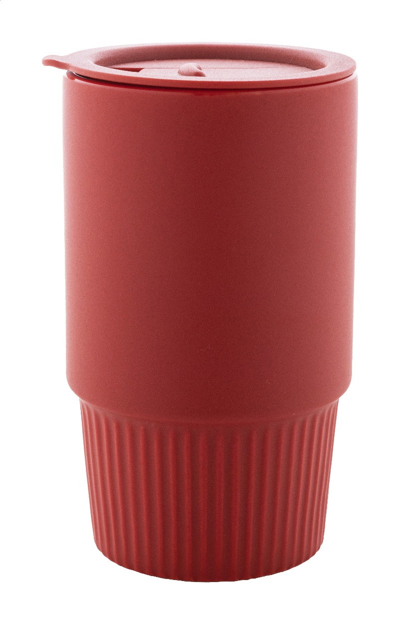 Cană de voiaj, din ceramică de înaltă calitate, cu finisaj exterior mat și capac din plastic PP. 420 ml.