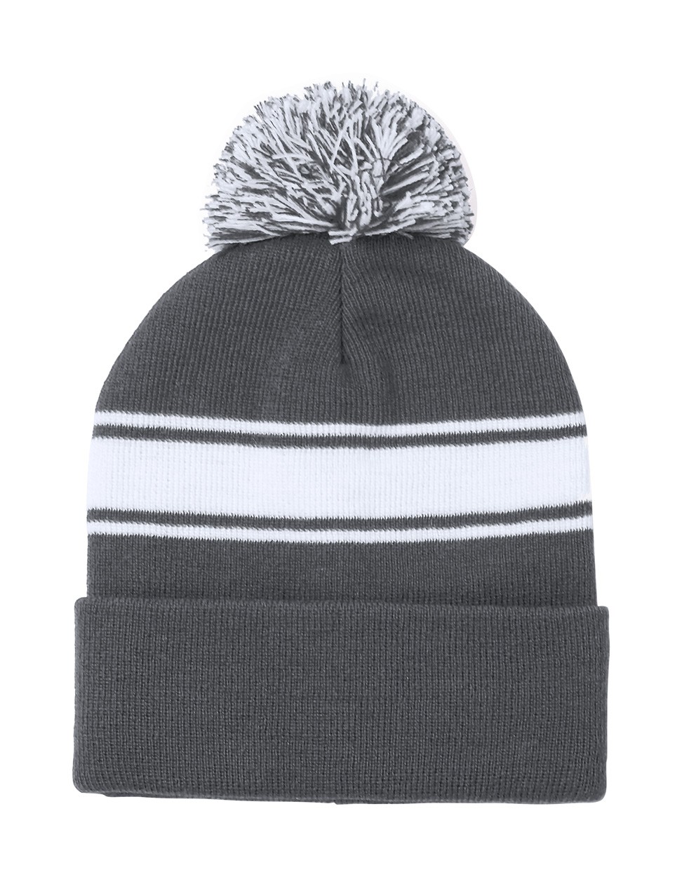 Căciulă de iarnă din acril cu dungi albe și pompon.