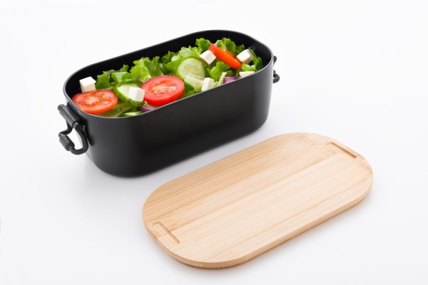 Cutie pentru prânz, din plastic PP cu capac din bambus și închidere cu cataramă, 1000 ml.