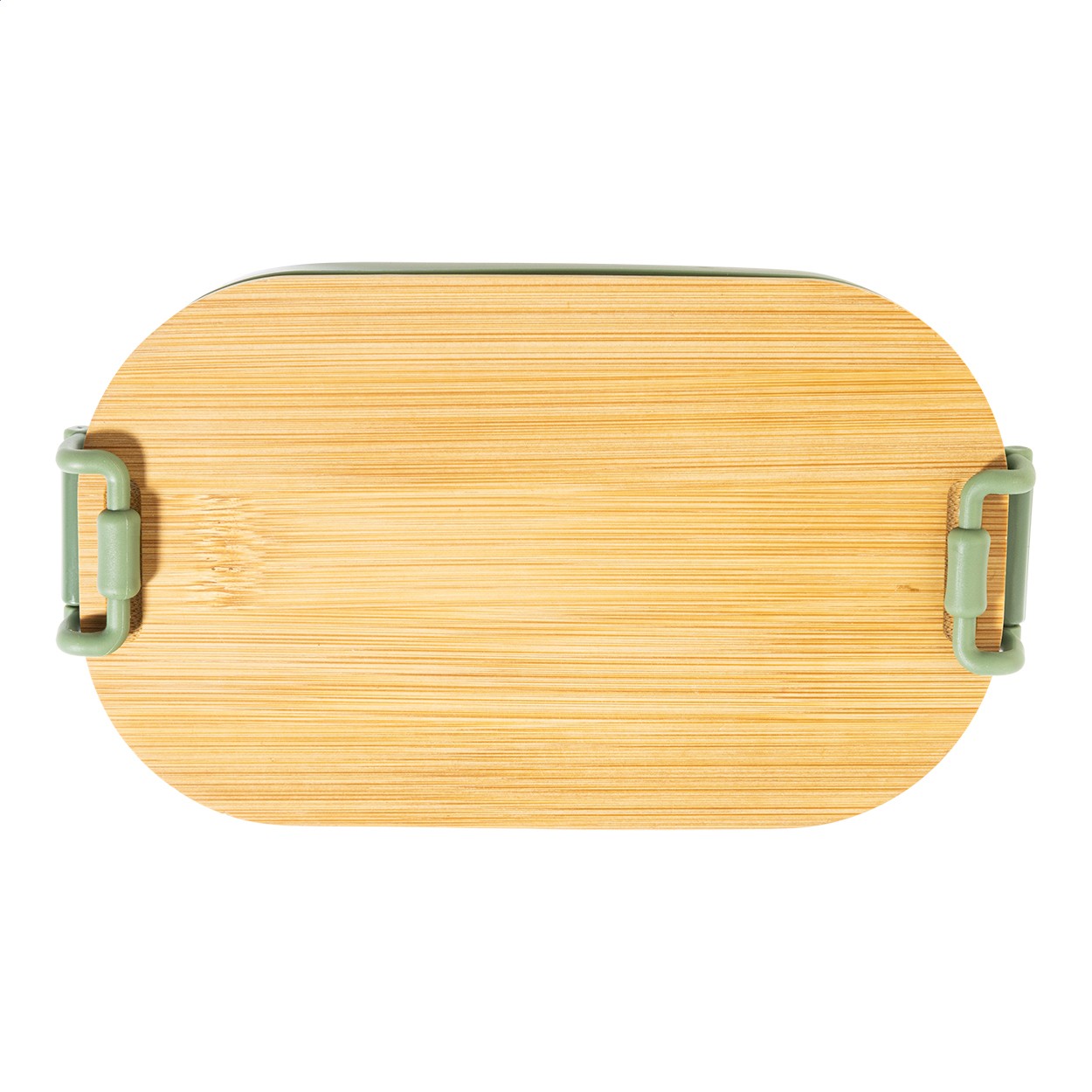 Cutie pentru prânz, din plastic PP cu capac din bambus și închidere cu cataramă, 1000 ml.