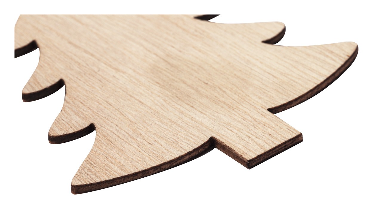 Ornament pentru brad, din lemn, cu sfoară de iută.