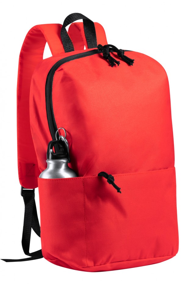 Rucsac cu buzunar lateral, buzunar frontal cu fermoar, spate și bretele căptușite. Poliester 600D.