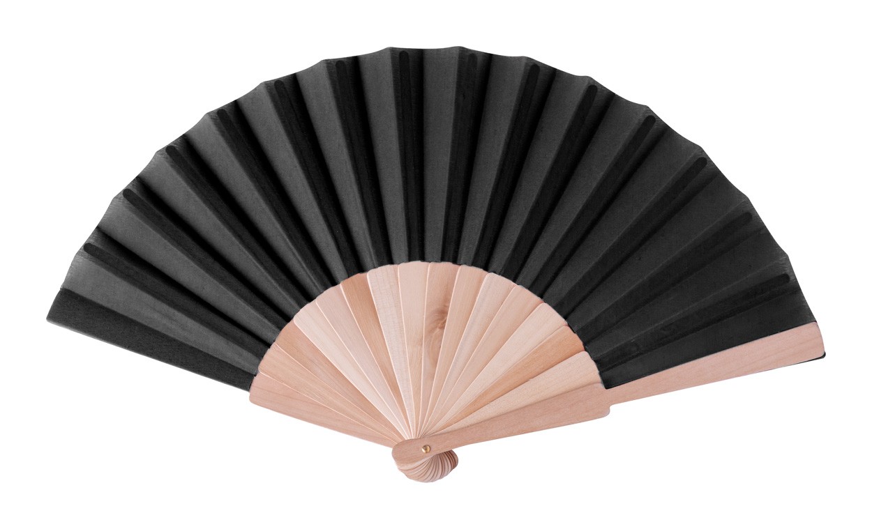 Evantai din poli-bumbac, cu nervuri de lemn.