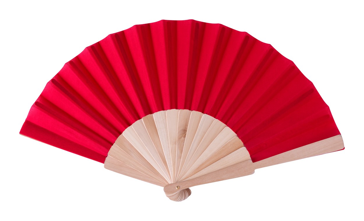 Evantai din poli-bumbac, cu nervuri de lemn.