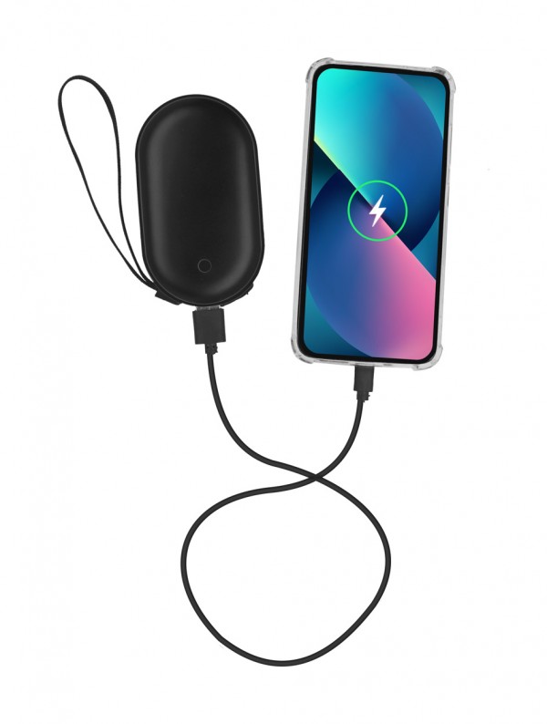 Baterie externă din aluminiu, cu funcție de încălzire a mâinilor și baterie de 4000 mAh. Cu 1 port USB și 1 port USB-C pentru încărcător. Port de intrare USB-C. Inclusiv cablu de încărcare USB.