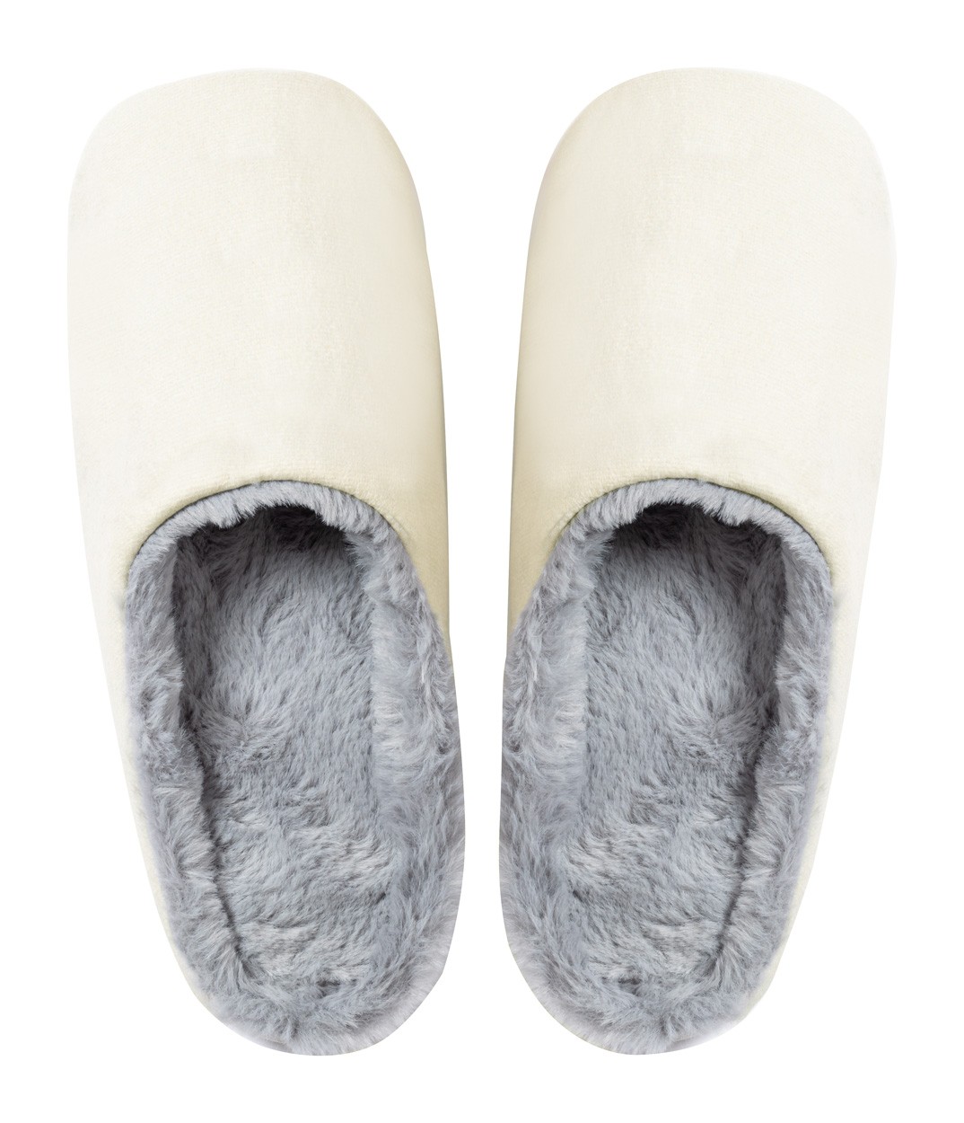 Papuci unisex, din bumbac, cu căptușeală din poliester flaușat.