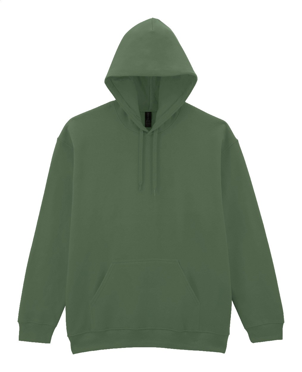 Hanorac cu glugă, din 80% bumbac și 20% poliester, cu buzunar frontal. 285 g/m² (alb 278 g/m²). Produs marca Gildan.