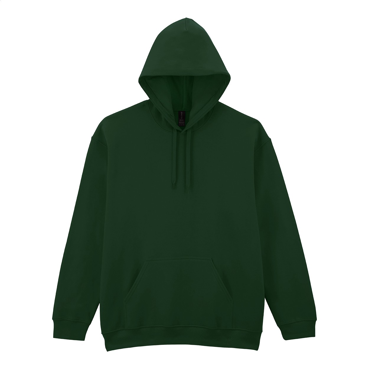 Hanorac cu glugă, din 80% bumbac și 20% poliester, cu buzunar frontal. 285 g/m² (alb 278 g/m²). Produs marca Gildan.
