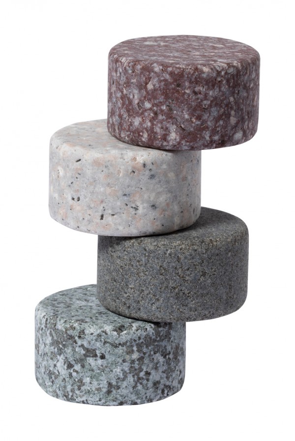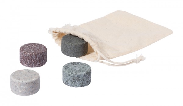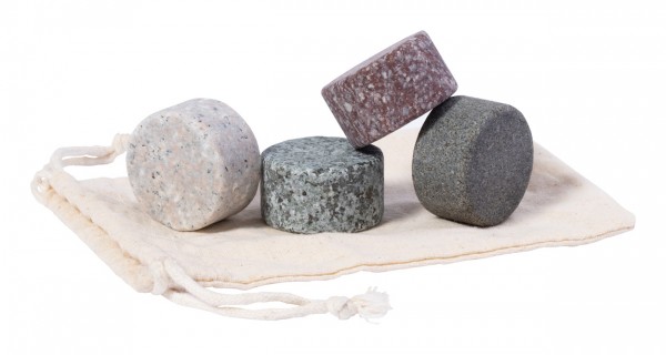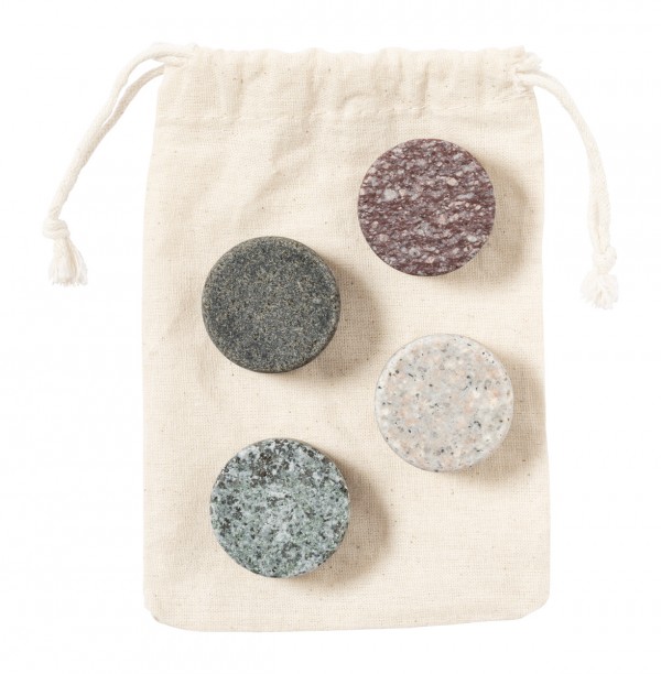 Set de 4 bucăți de cuburi de gheață din granit, reutilizabile, în pungă de bumbac.