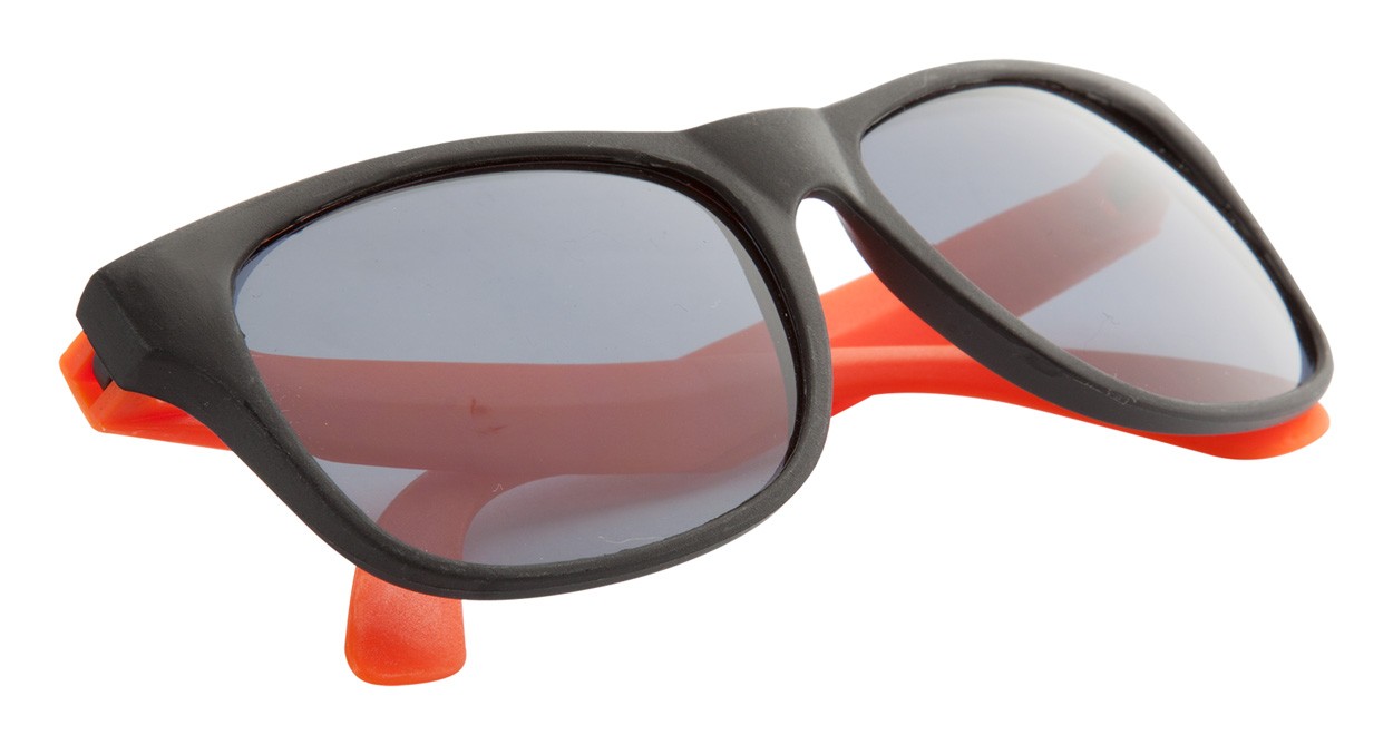 Ochelari de soare din plastic, ramă neagră cu finisaj mat, brațe colorate, protecție UV 400.