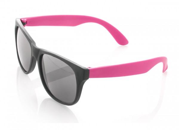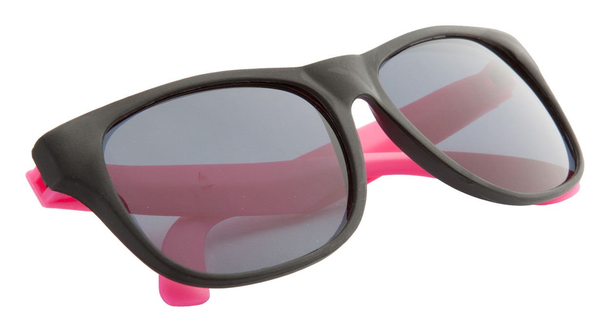 Ochelari de soare din plastic, ramă neagră cu finisaj mat, brațe colorate, protecție UV 400.