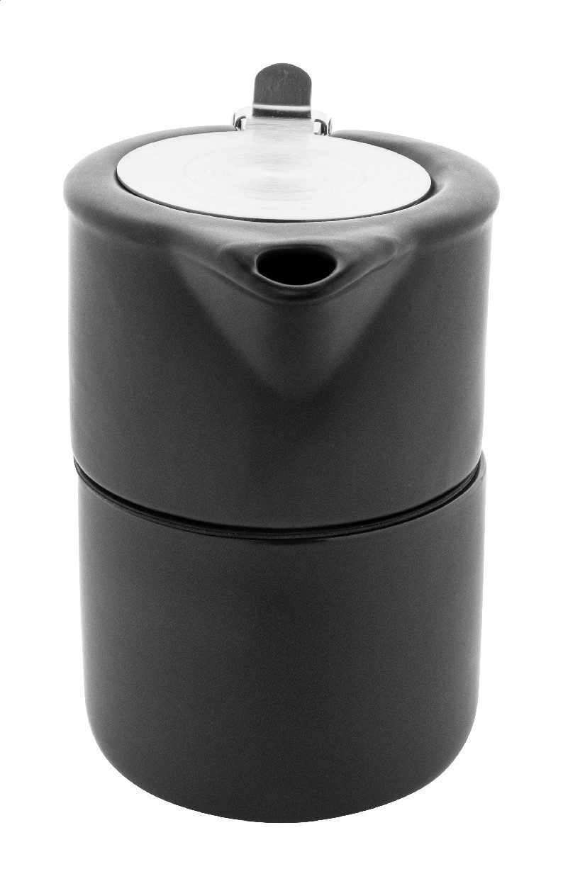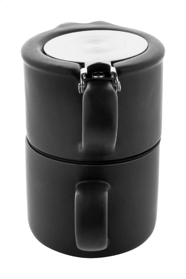 Set de ceai din ceramică de înaltă calitate, cu finisaj mat. Include un ceainic (430 ml) cu capac din oțel inoxidabil și sită pentru ceai, conceput pentru a fi stivuit perfect peste cana asortată (400 ml). Ambalat în cutie de hârtie kraft.