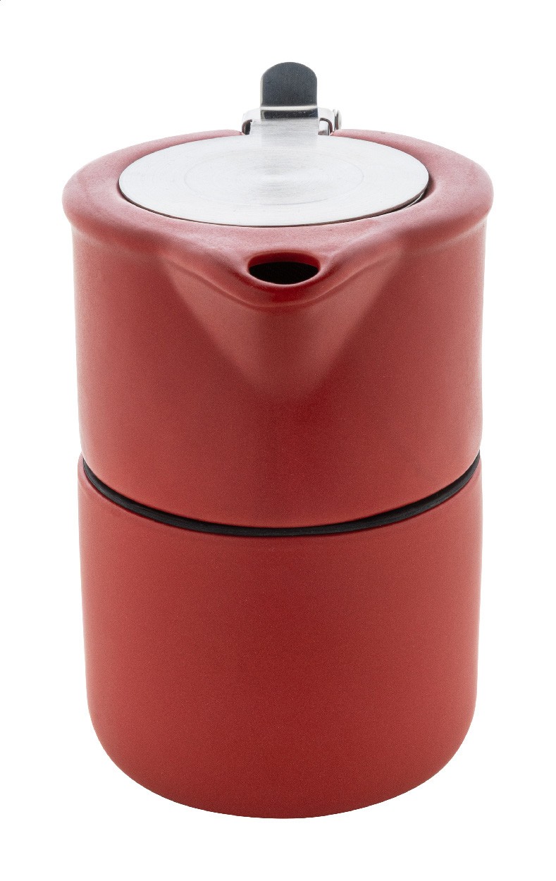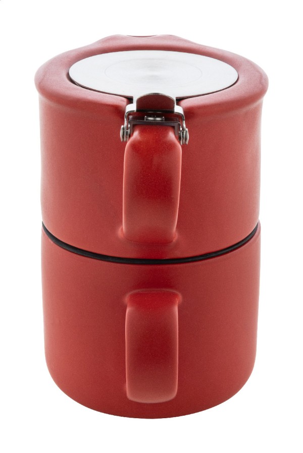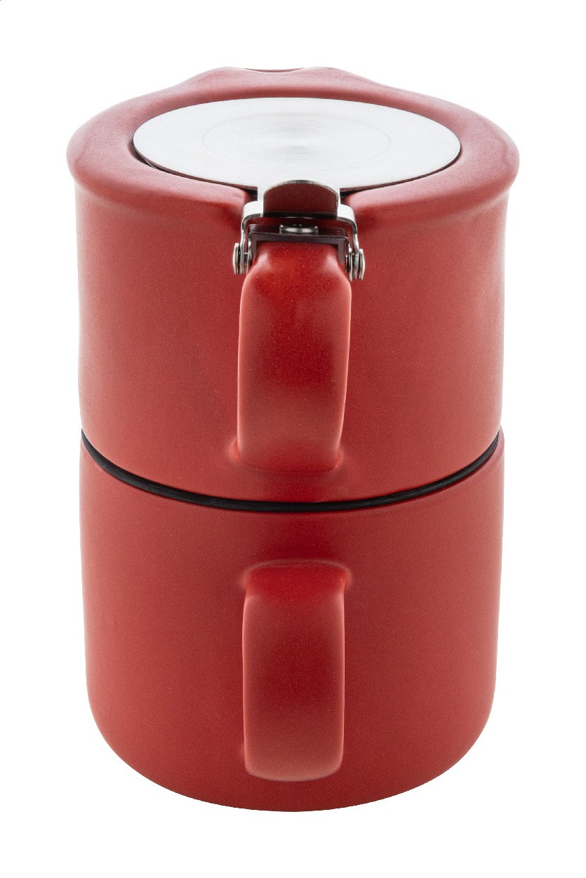 Set de ceai din ceramică de înaltă calitate, cu finisaj mat. Include un ceainic (430 ml) cu capac din oțel inoxidabil și sită pentru ceai, conceput pentru a fi stivuit perfect peste cana asortată (400 ml). Ambalat în cutie de hârtie kraft.