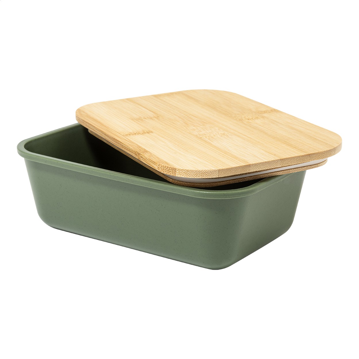 Cutie de prânz, din plastic PP, cu capac din bambus și capac elastic. 1000 ml.