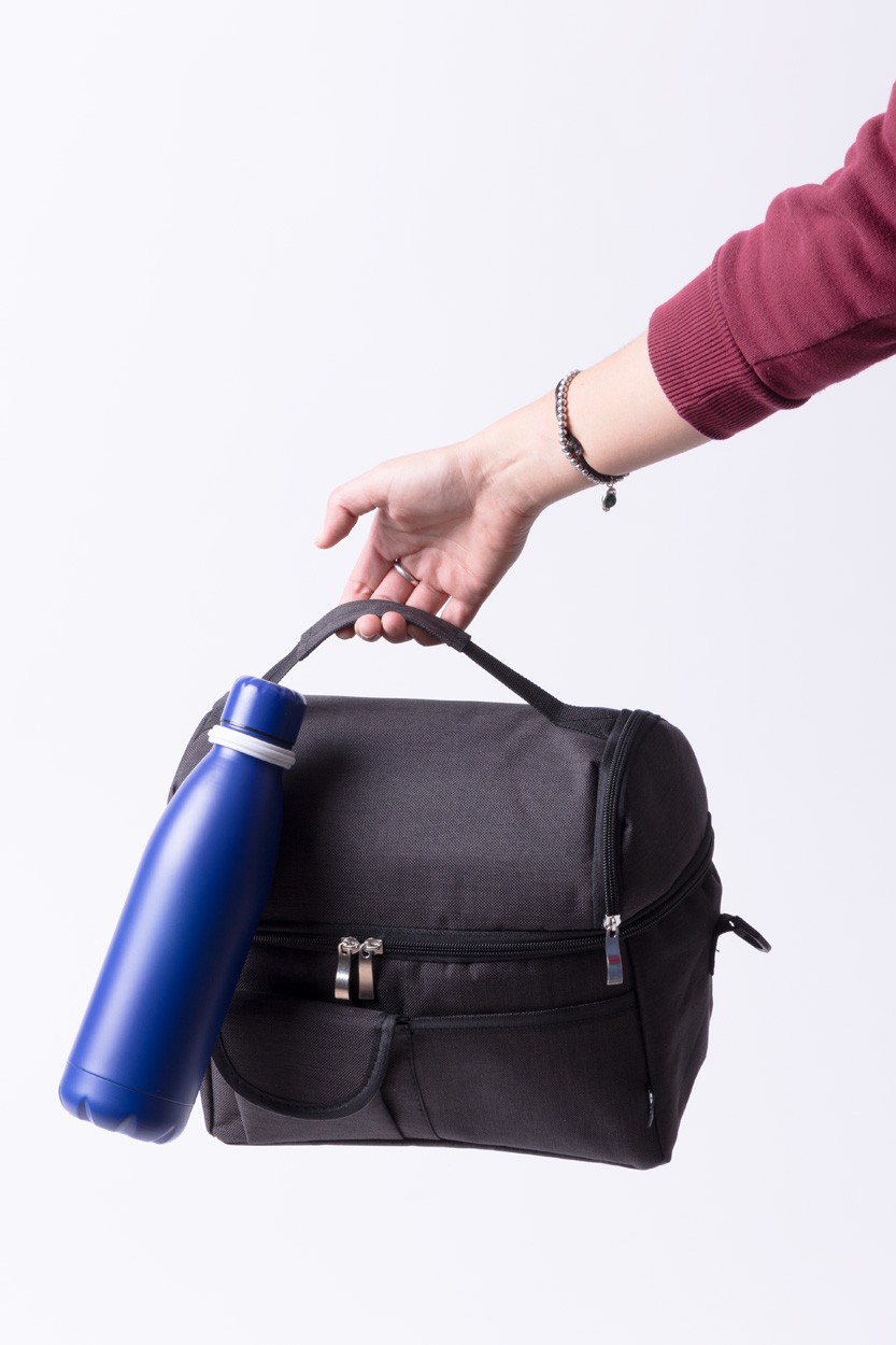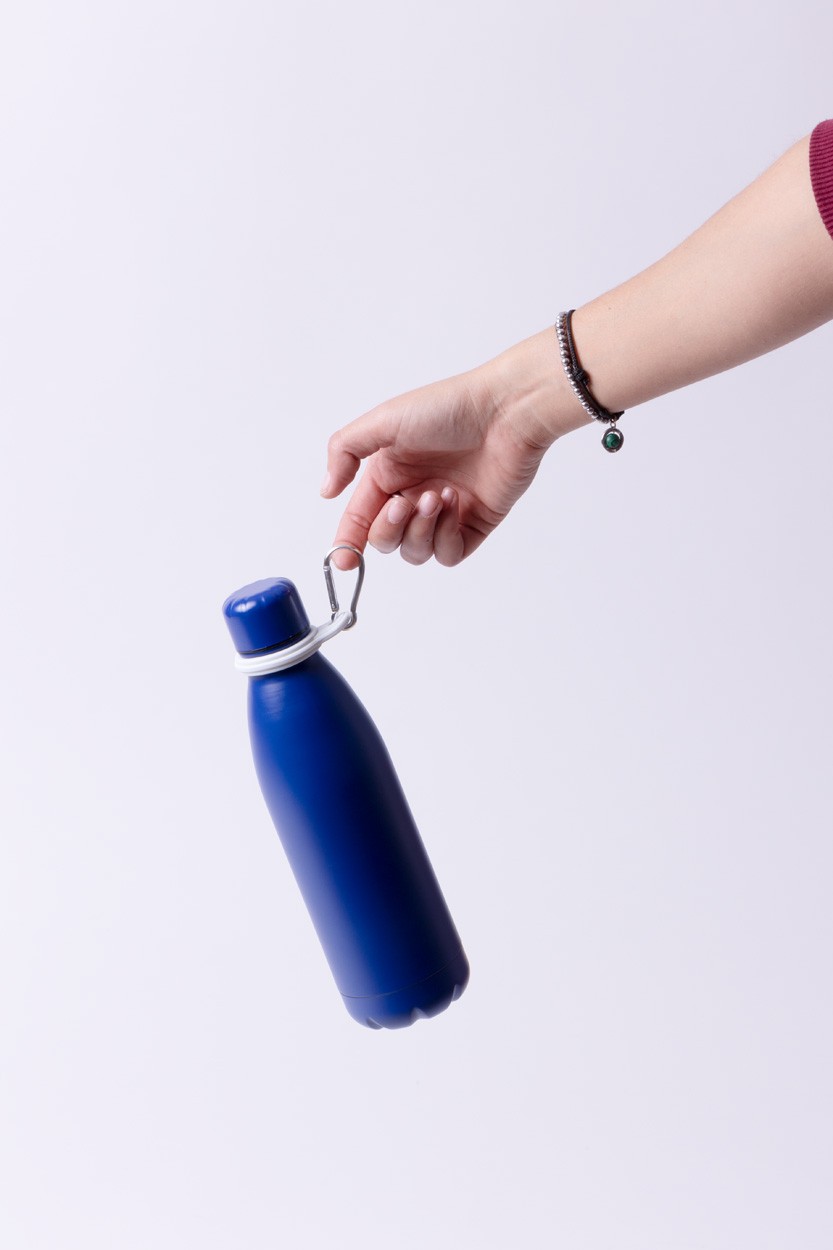 Suport pentru sticle, din silicon, cu carabină de transport din aluminiu.