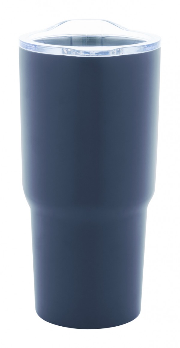 Cană termoizolată, din oțel inoxidabil reciclat, cu perete dublu, cu capac de băut din plastic PS. 600 ml.