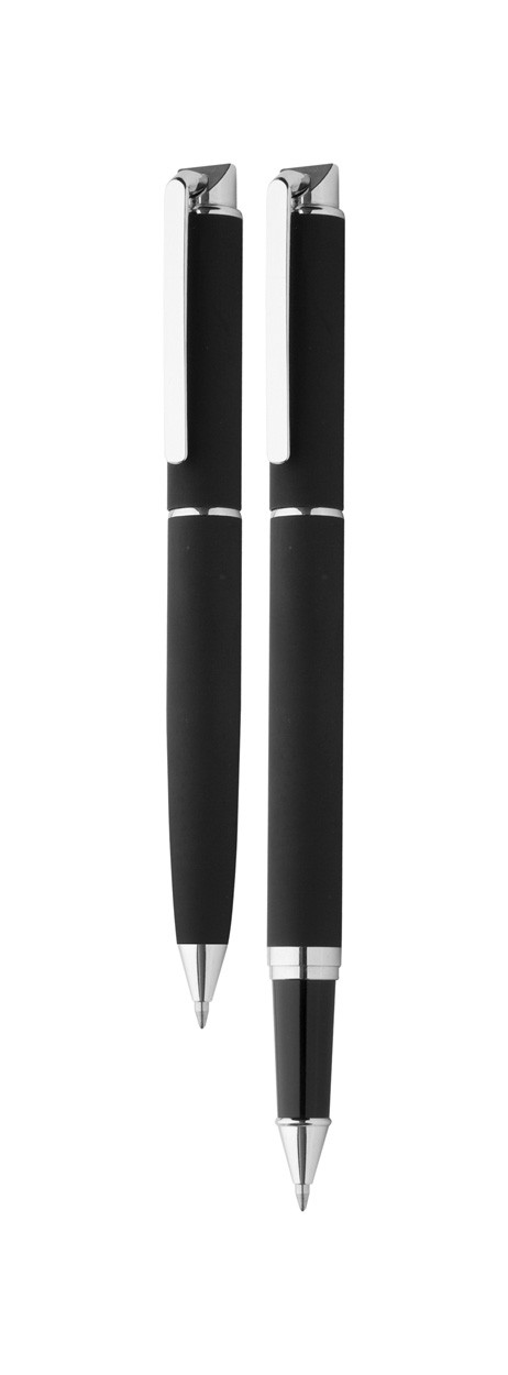 Pix metalic și roller cu finisaj cauciucat. În cutie de cadou din hârtie, cu magnet. Mină neagră.